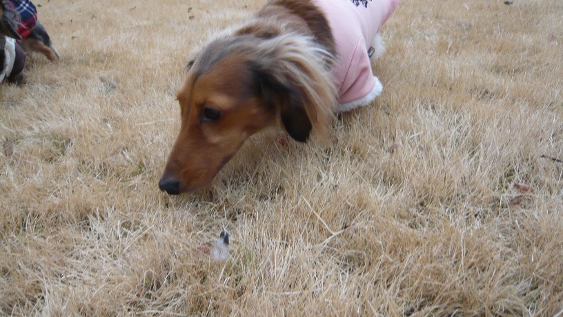 入れて隠しちゃったんだけど、さくらちゃんはパパのポッケが気になって気になって・・・