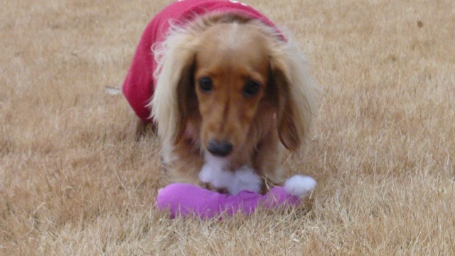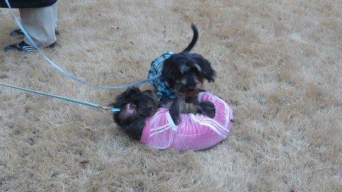 さくらちゃんが咥えてる、布のおもちゃ~、これがね~、大人気だったのです!