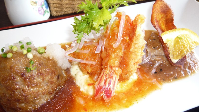 なか村三昧NO.1がハンバーグ・海老フライチリ・牛ロース。