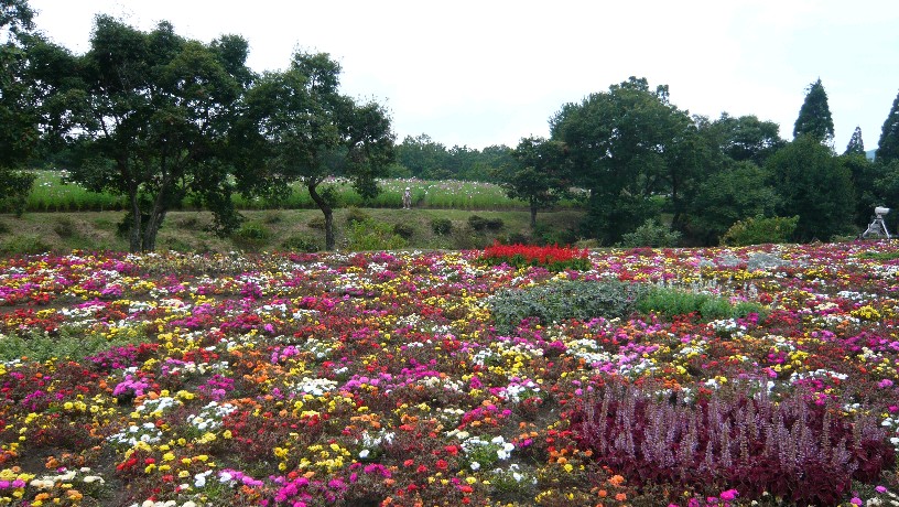 木々の奥の一段高い所がコスモス畑でしたが、コスモスまだちょっと早かったです