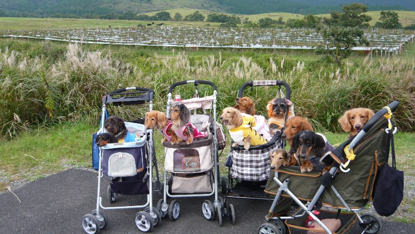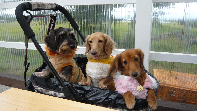 さかもと家のはなちゃん・てんちゃん・じんくんもカートでした。