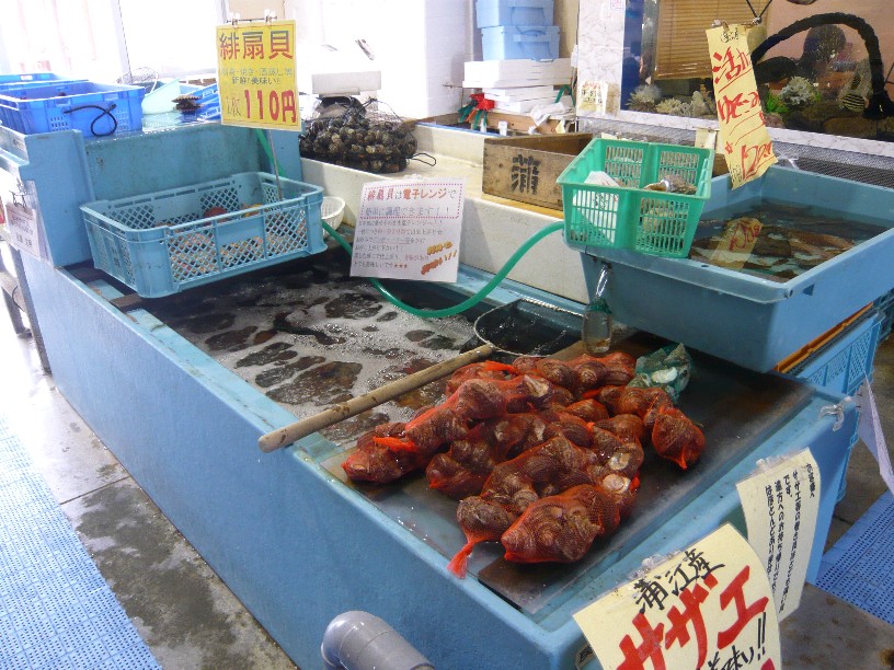 サザエ、ヒオウギ貝、伊勢エビなどなどの直売所もあります。