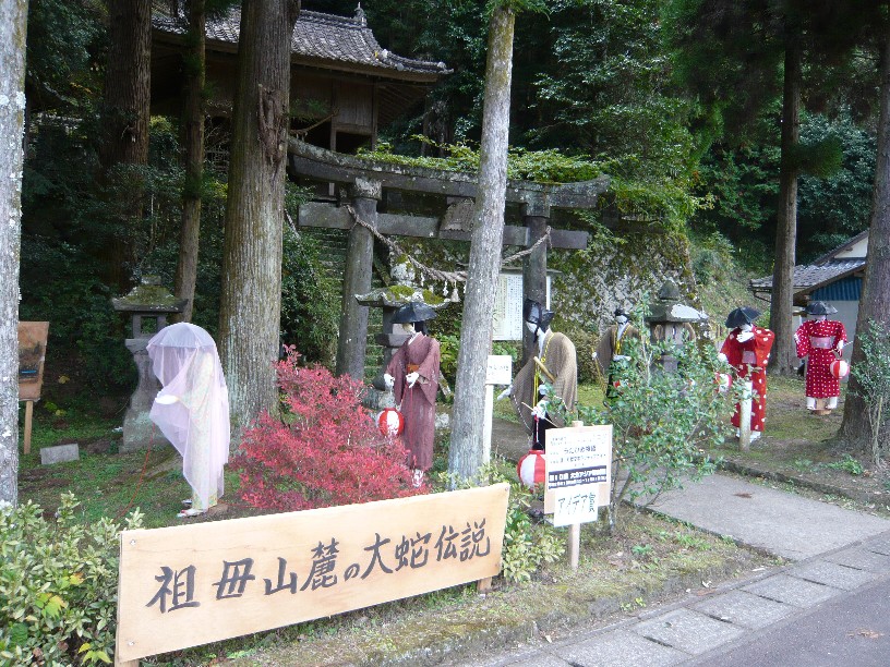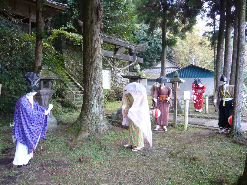 神社と人形(かかし)がいい感じにマッチしていい雰囲気をかもし出していて、