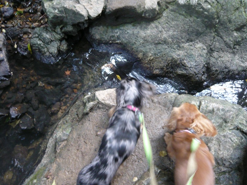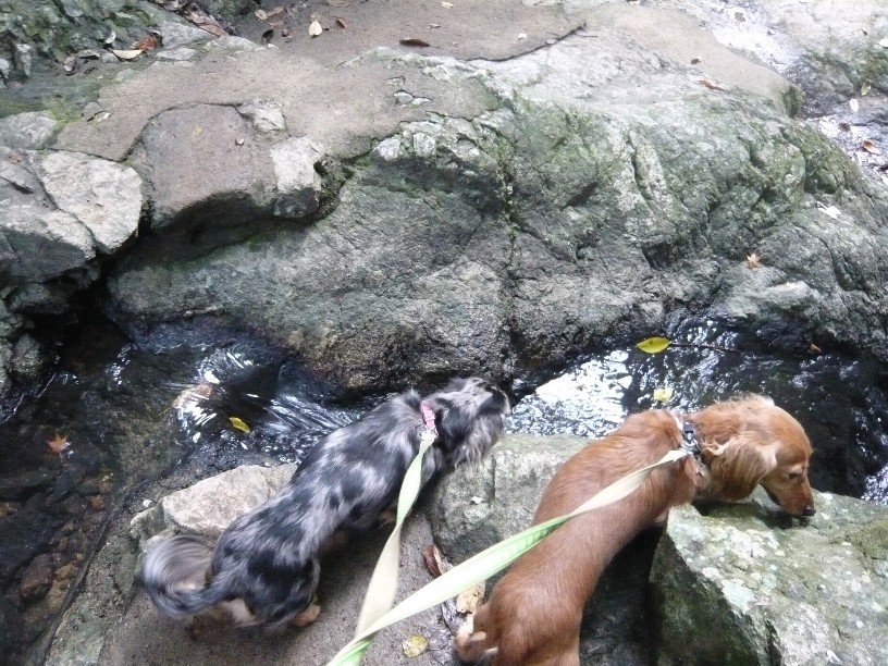 地面は濡れててすべるのに2ワンから引っ張られるわたしはヒヤヒヤしながら下って行きました。