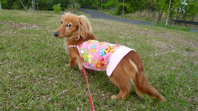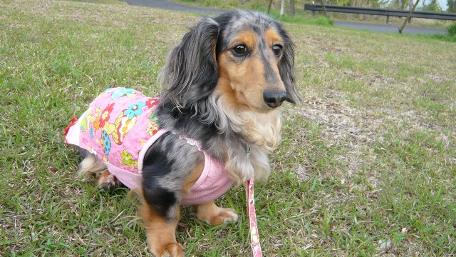 「ながいリードはもってこなかったの?」って顔をしているちょこさんです。