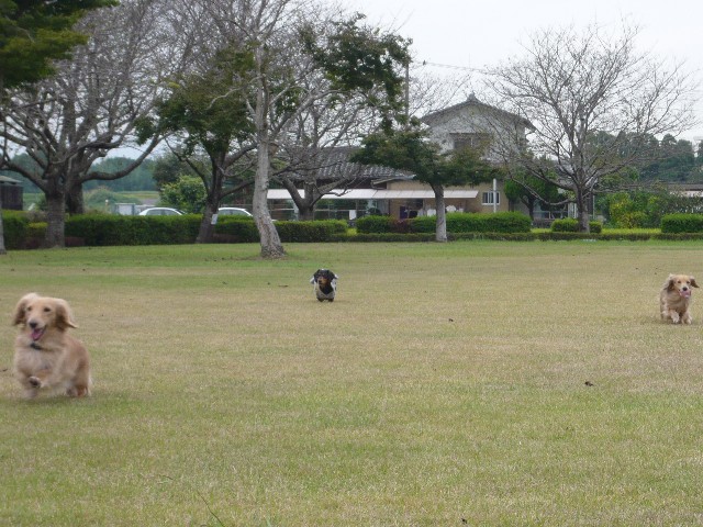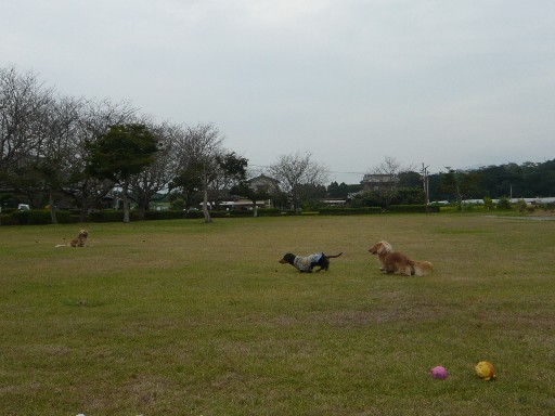 午前中は日も射してたけど午後からは薄曇りだったので、ママたちもワンコたちと一緒に広場を駆け回ってました~