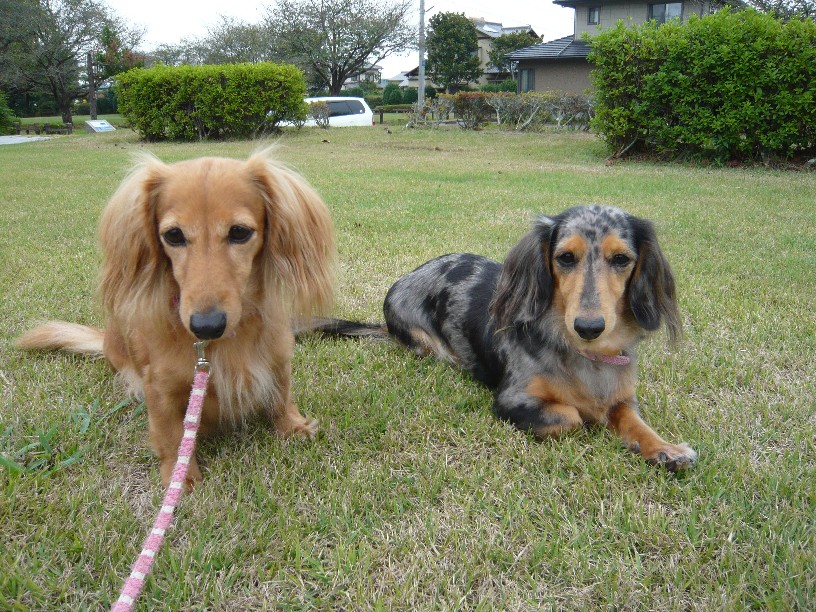 で、ちょこさんとヴァ二さんはお友達ダックスちゃんたちと遊びましたよ~