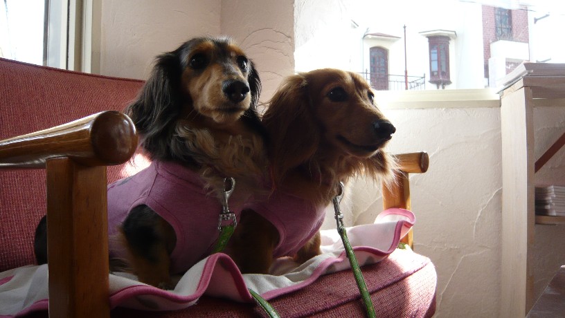 左にヴァ二さん、右にちょこさんがお座りしています。