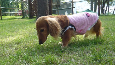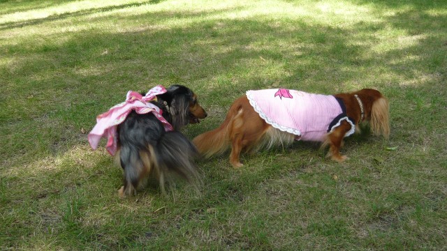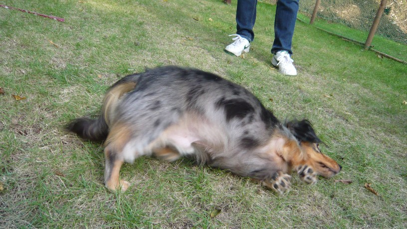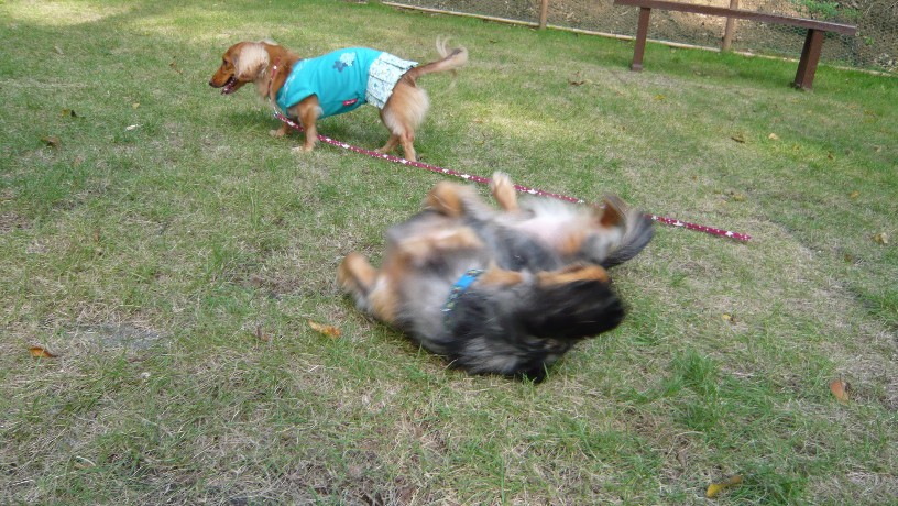 ちょこヴァニちゃんも芝スリスリするんですね~