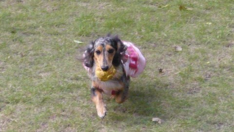 わたしが投げたおもちゃを咥えて戻ってきました~!