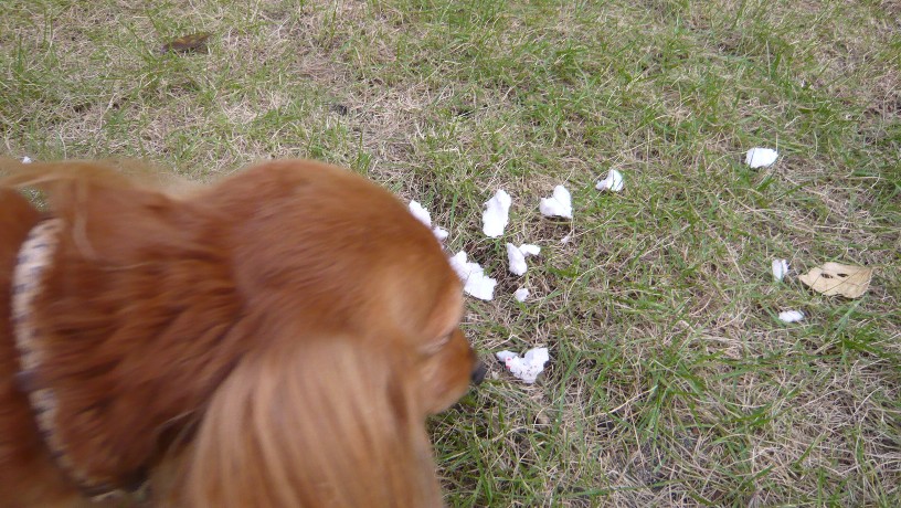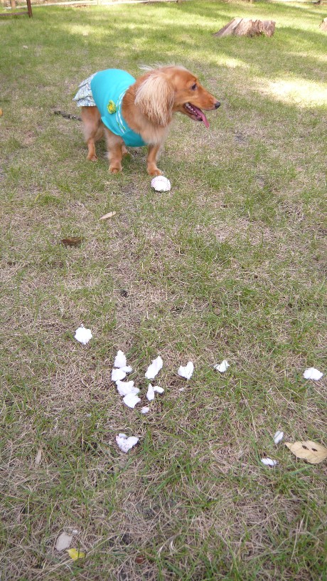 ばら撒きながら、袋にお顔を突っ込みまだカミカミできそうな大きな塊を見つけて、