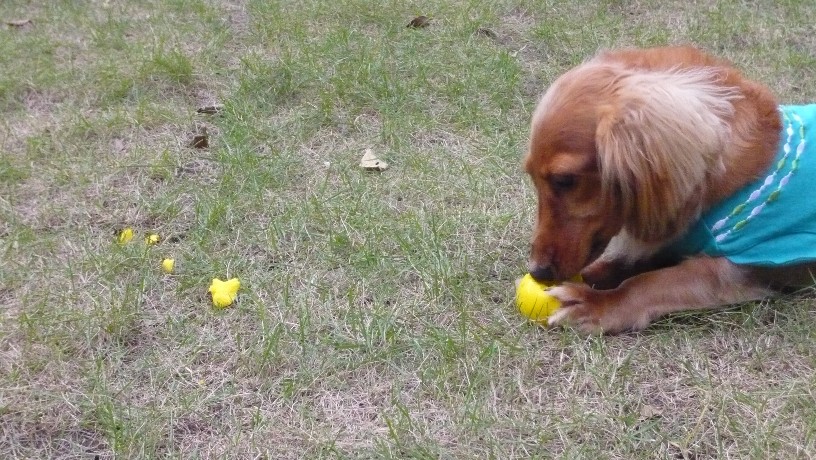 ↓こちらのお嬢さんが誰にも取られないようにキープしてカミカミして遊んでた、