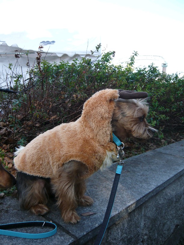 サンタの格好もかわゆいけど なにげないかんじで飼い主さんと ワンコちゃんが 色合いだったり 服のかんじとかが あってるってのが わたし おっしゃれーとおもいますよ。