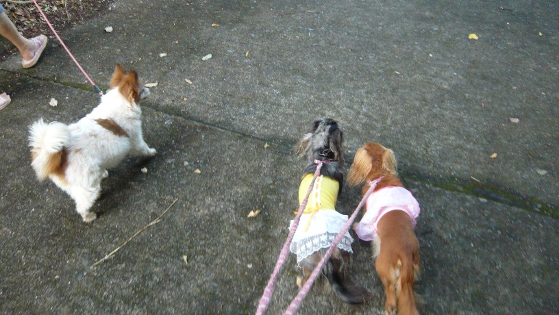 グランド工房さんのお庭でたくさんお散歩を楽しんだお嬢さん方ですが・・・