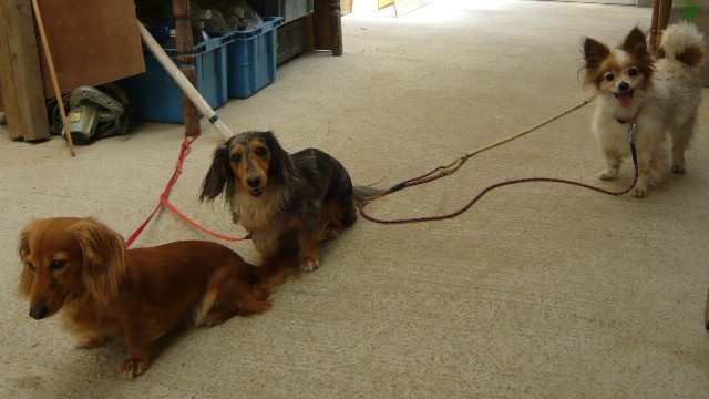 この日はランラン出来ずでガレージで遊んでた3ワンです