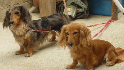 工事の方がいるなんて聞いてなかったからちょこヴァ二も連れていったのに、この日はノーリードで遊べなくてつまんなそうな2ワンでした