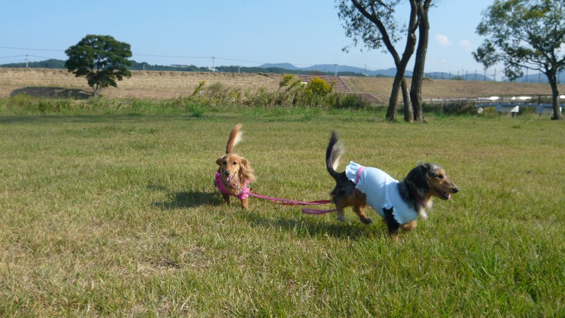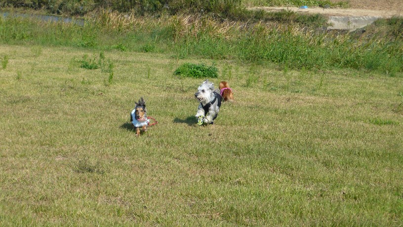 ワンコたちは橋を渡った先にある広場でランランランしました~