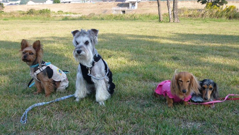 でも広い芝生の上で4わんちゃんが仲良く遊べたし、