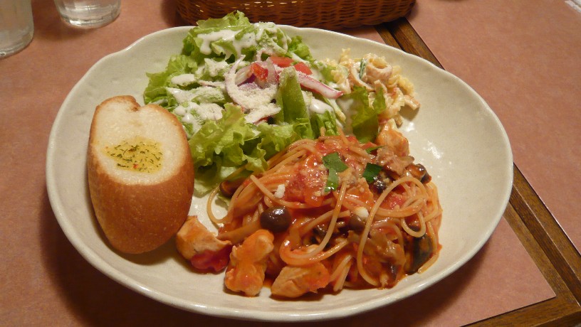 ワンプレートでもボリューム満点、トマトソースのパスタ美味しかったです