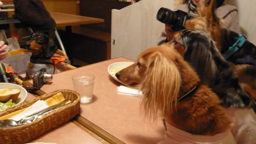 テーブルにお料理がきたら身を乗り出すワンコたち・・・