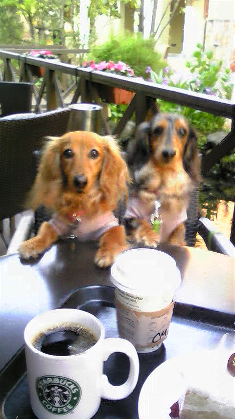 ドッグラン遊んだ後はスタバでまったり~のちょこさんヴァニさんでした~