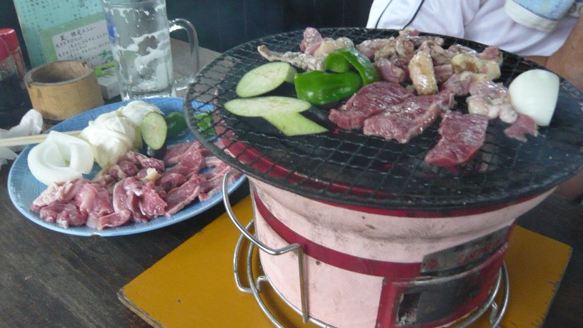 雨のシトシト降る中で地鶏やカルビをヤキヤキして美味しくいただきました~