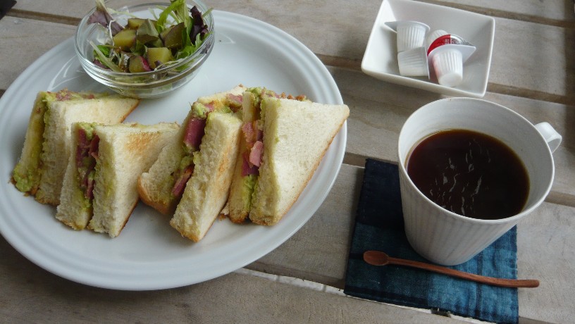 日替わりのカリカリベーコンとアボガドのサンドイッチにコーヒーをセットにしました。
