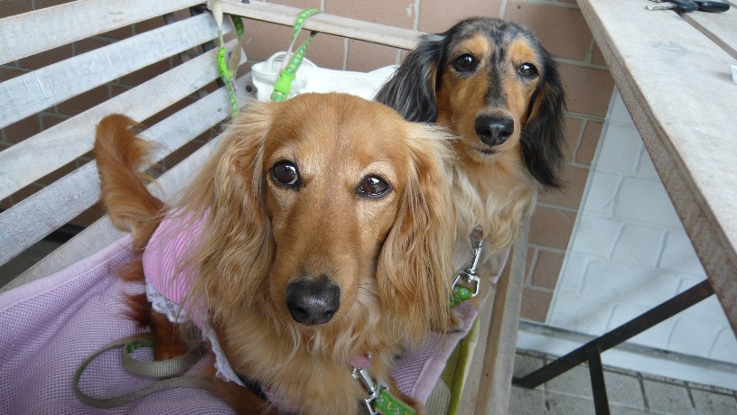 Mダックスの親子と一緒に暮らしています。