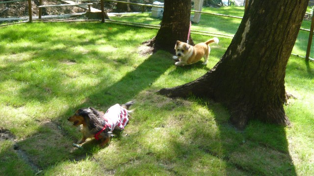 小型犬エリアの全景を撮ろうと2わんを残してわたしがランから出たら・・・