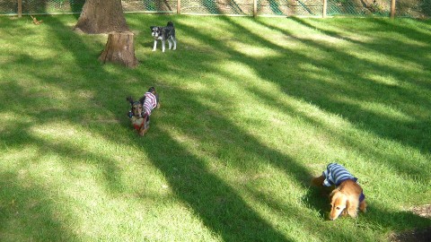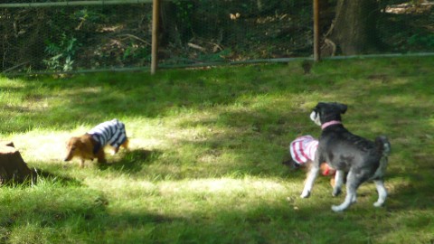 森の中のドッグラン、ワン・LOVEさんの小型犬エリアで遊んでいたちょこさんと