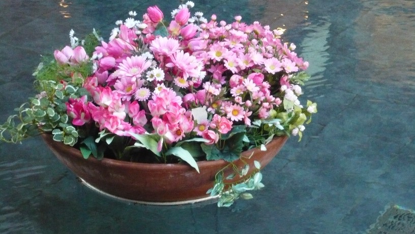ここは色とりどりの綺麗なお花が水面に浮かんでとても綺麗です。