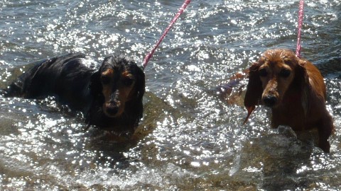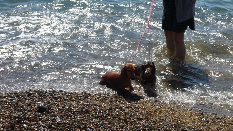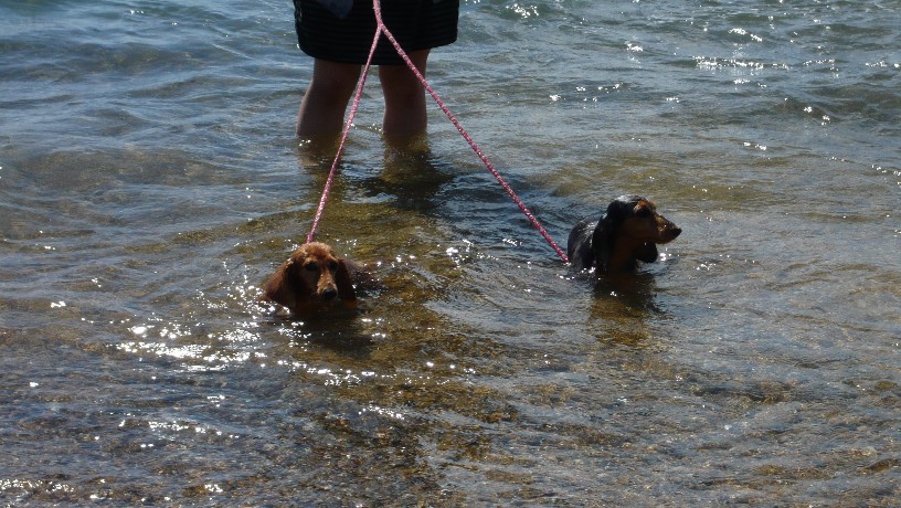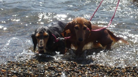 ちょこさん、ヴァ二さんは1年ぶりの海で水遊びです