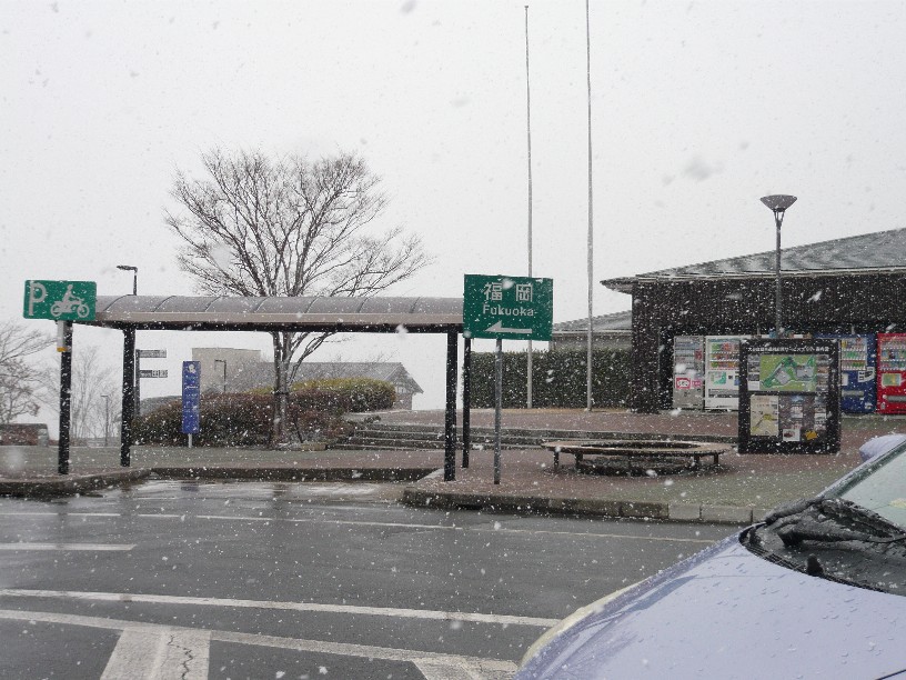 別府ICを過ぎたあたりから雪がチラチラし始めたと思ったら・・・