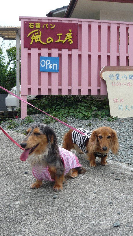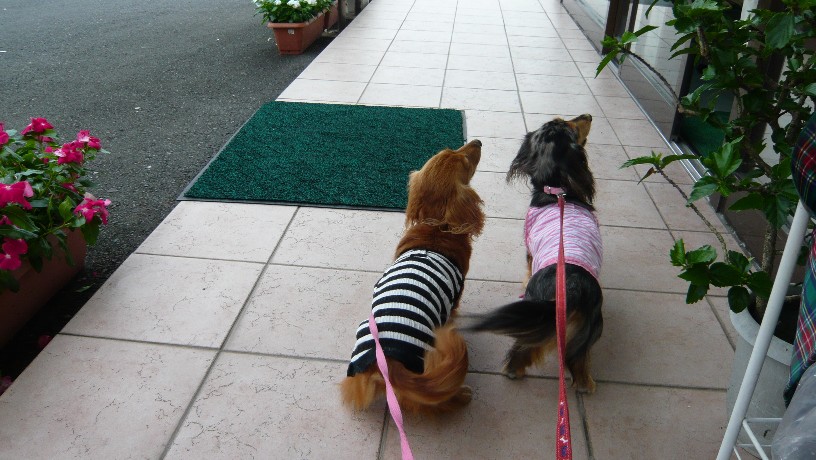 ちょこさんとヴァ二さんは入れないので我が家の住人とお店の外で待ってます。