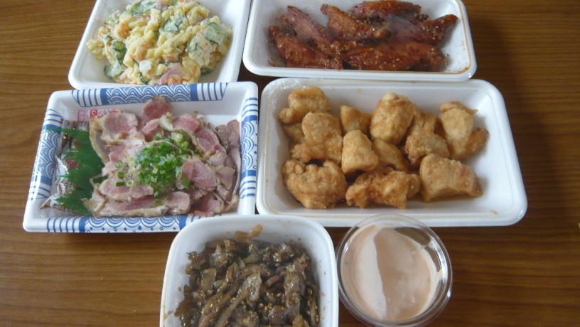 お昼ご飯のおかずを選んでテイクアウトしました。