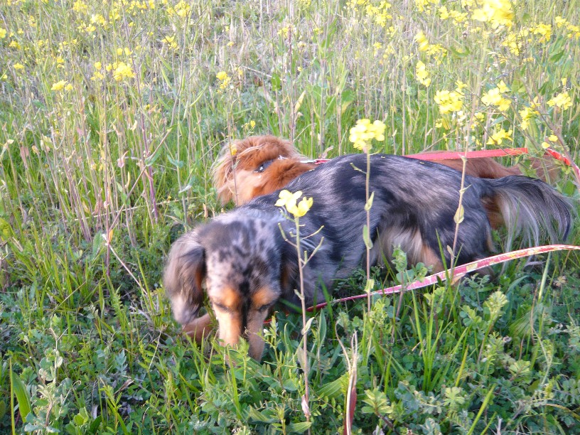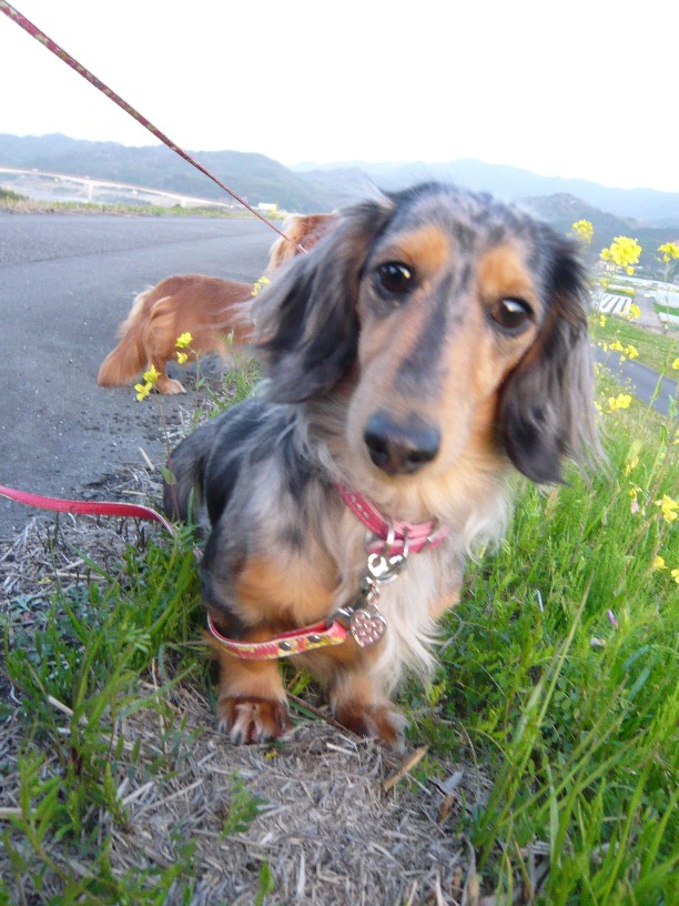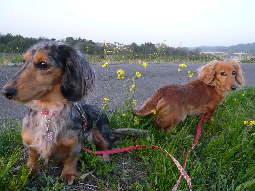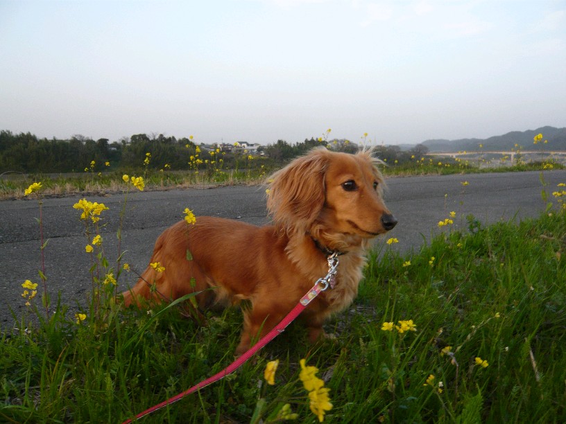 お利口さんにお留守番のご褒美に菜の花ロードにお散歩。