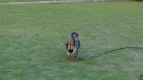 広い場所でヴァニさんはロングリードに付け替えてフワフワボールで
