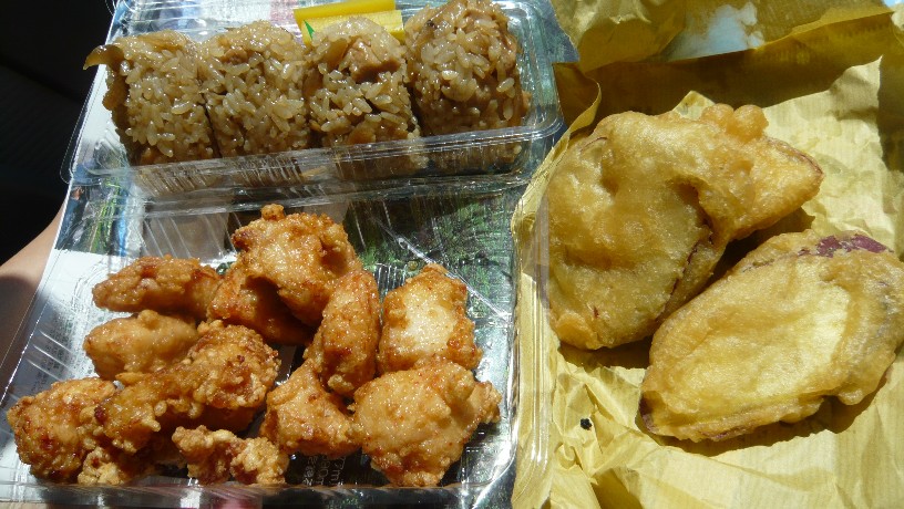 鶏飯のおにぎり、からあげ、いも天を買いました。