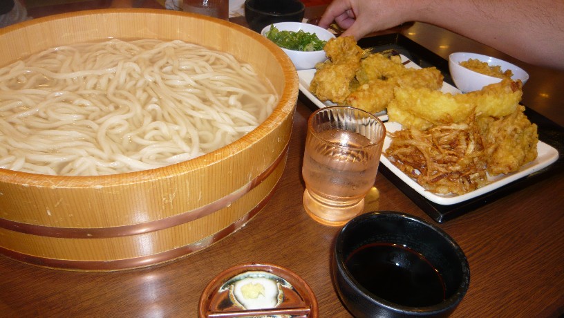 こちらのような大きな桶に釜揚げうどんが入っていて、天ぷらもたくさんの種類があって迷っちゃう