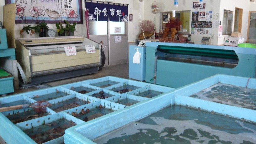 いけすの中には美味しそうな魚介類がたくさんありました。