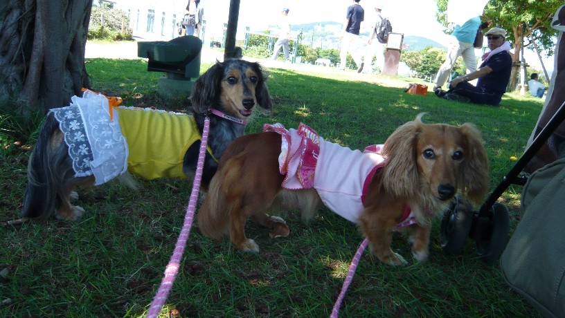 お姉さんもダックスを飼ってるそうで涼みながらダックス談義~