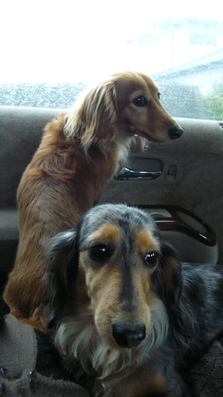 雨が降ってて車から降りれなかったからずっと乗ってただけなんだけど、家でお留守番してるよりよかったんでしょうね!