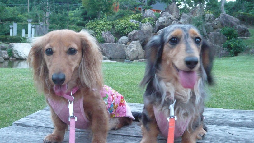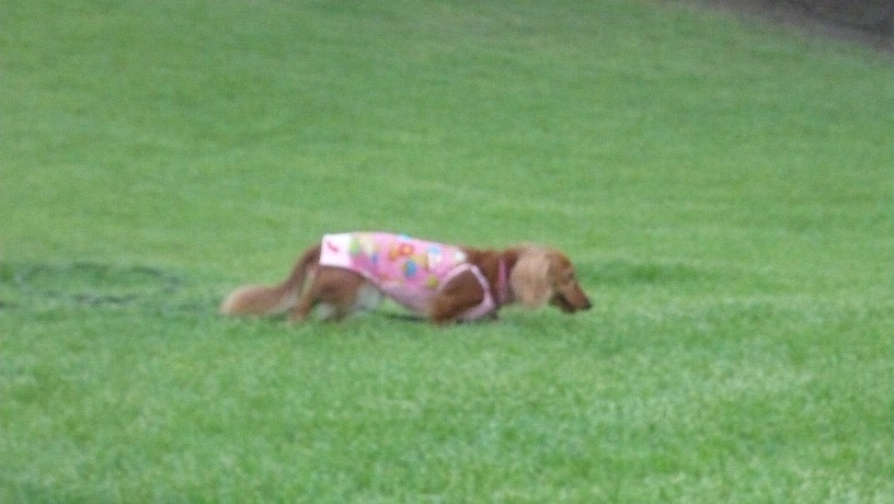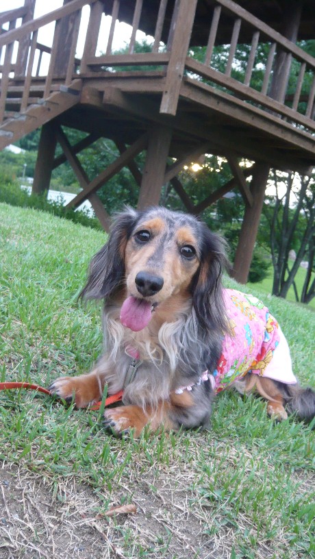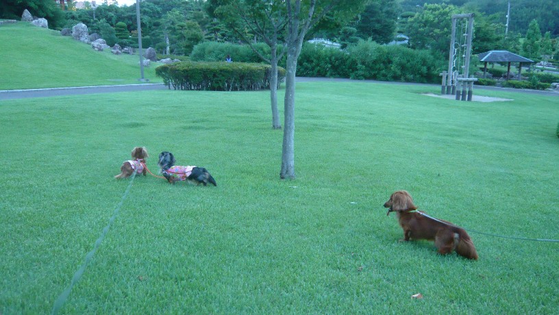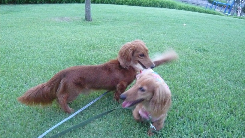しばらく遊んでいるとダックスを連れた小学生の男の子がお散歩にやってきました~!