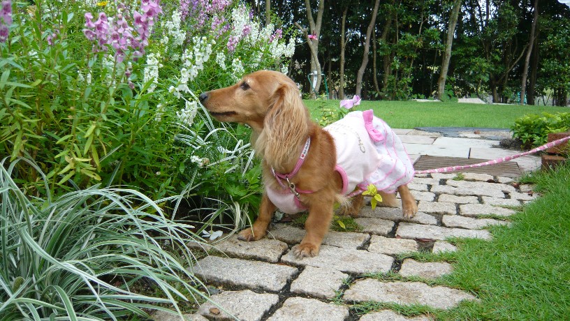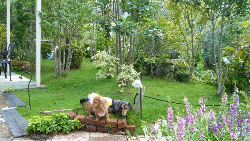 ステキなお庭でたくさんお散歩したちょこさんとヴァ二さんでした