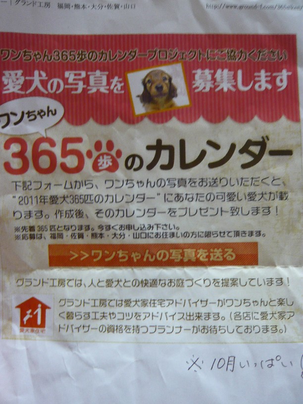 2011年用のカレンダーのワンちゃんのお写真を募集しています。