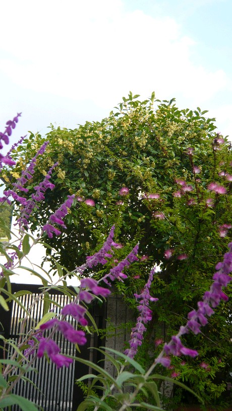アメジストセージはお水あげなきゃ枯れちゃうけど、ネムの木も銀木犀も手入れなんてしなくても季節になると
