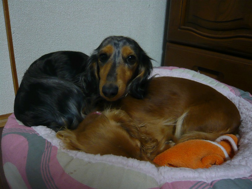 Mダックスの親子と一緒に暮らしています。