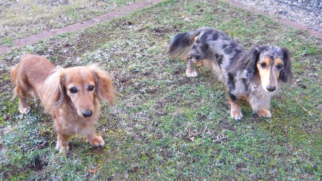 ちょこさんとヴァ二さんがお庭で遊ぶと必ず、お隣のダックスのアイちゃんが