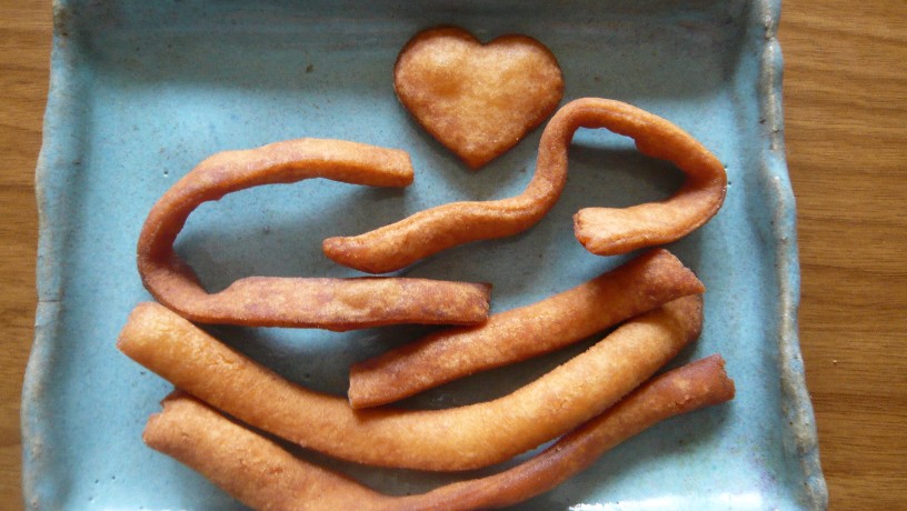本当のかりんとうはこちらのような細長いスティック状 (曲がったのもありますが)
