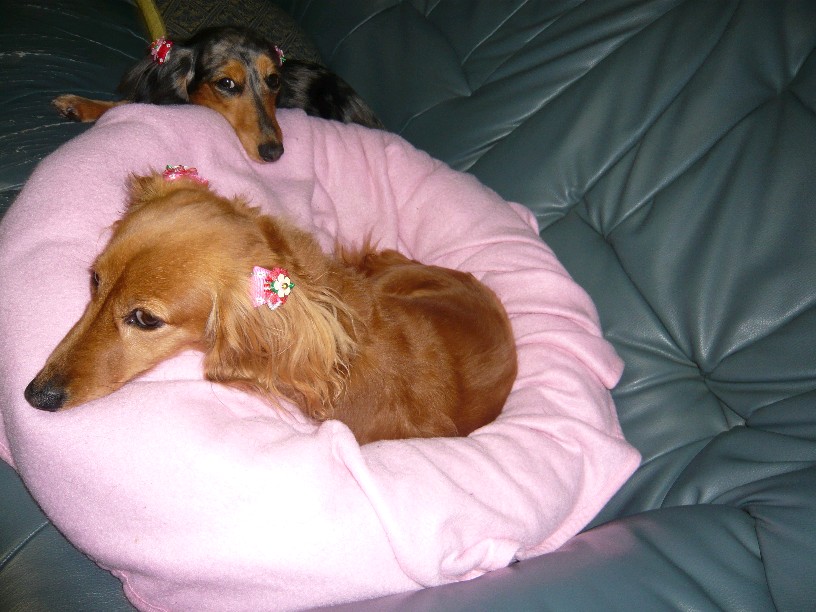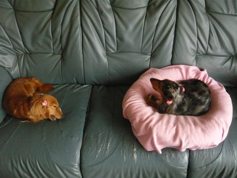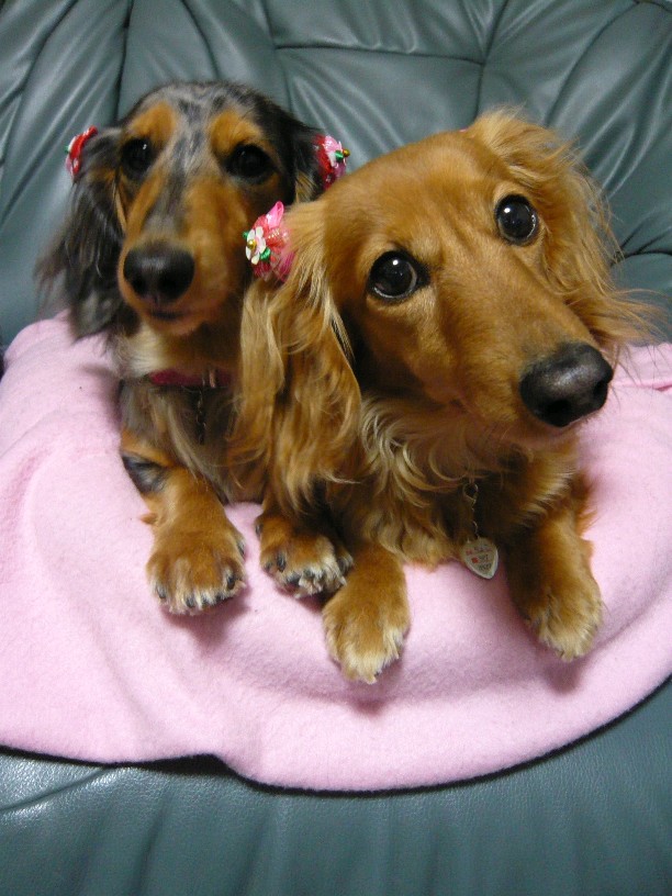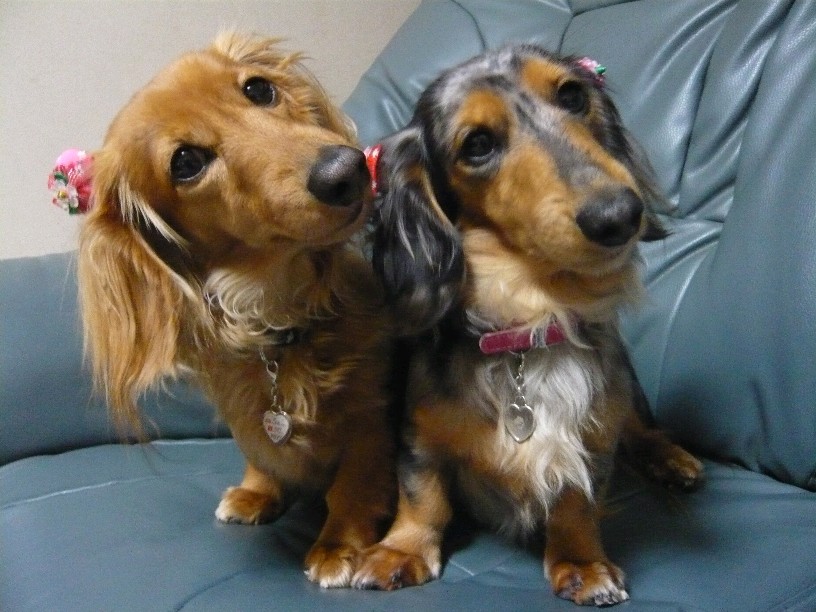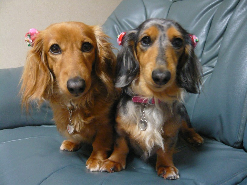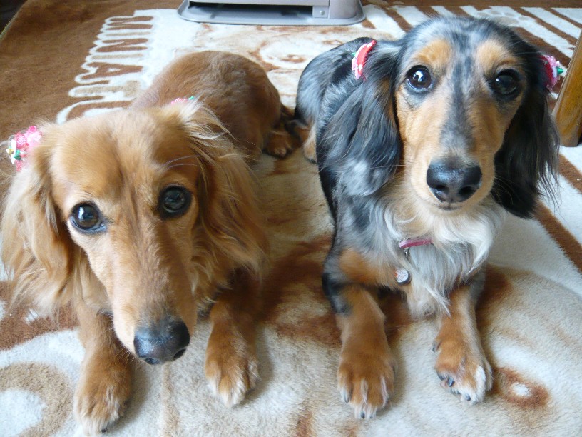 Mダックスの親子と一緒に暮らしています。